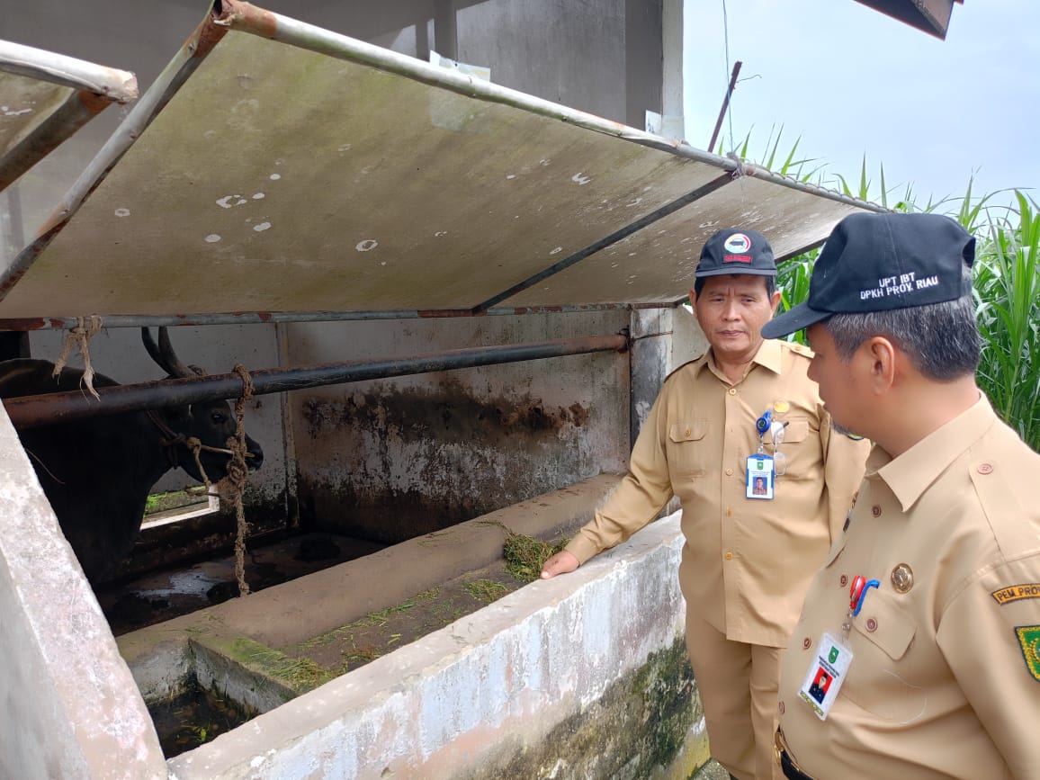 Ket foto. : Kepala Dinas Peternakan dan Kesehatan Hewan (PKH) Provinsi Riau, Drs. H Masrul Kasmi M Si di dampingi KUPT Inseminasi Buatan Ternak Dinas PKH Riau di Kecamatan Tenayan Raya Pekanbaru, Marianto Syam, ST, Senin (8/1/2024) saat melakukan kunjungan di UPT Inseminasi Buatan Ternak Dinas PKH Riau di jalan badak kulim.