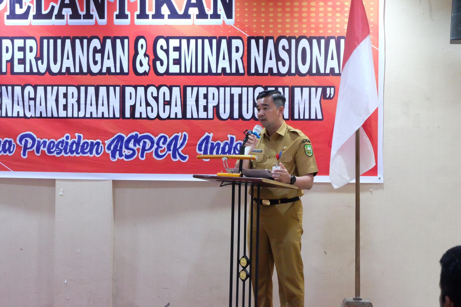 Dalam sambutannya, Kepala Dinas Tenaga Kerja dan Transmigrasi Provinsi Riau, H. Boby Rachmat, S.STP, M.Si menyampaikan pentingnya peran serikat pekerja sebagai mitra kerja pengusaha dalam meningkatkan kesejahteraan pekerja/buruh.