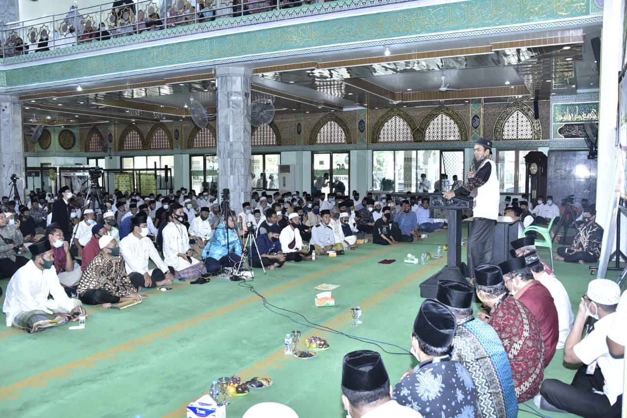 UTUSANRIAU.CO, BENGKALIS - Penjabat (Pj) Bupati Bengkalis H Syahrial Abdi mengikuti acara Tabligh Akbar bersama Tuan Guru kita, Al-Mukarrom Datuk Seri Ulama Setia Negara Ustadz Prof.Dr.H.Abdul Somad, Lc, Ma, di Masjid Agung Istiqomah Bengkalis, Rabu (25/11/2020).
