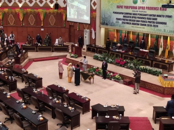 Pengucapan sumpah/janji dipandu langsung oleh Wakil Ketua DPRD Provinsi Riau Hardianto. Terpilihnya Yanti Komalasari dari fraksi partai Golkar dan Dona Sri Utami dari fraksi partai Gerindra merupakan sebagai Pengganti Antar Waktu (PAW) anggota DPRD Provinsi Riau sisa masa jabatan 2019-2024.
