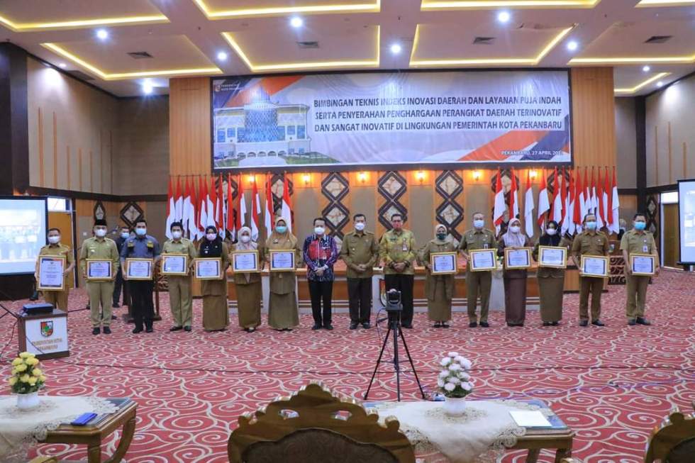 Walikota Pekanbaru Dr. H . Firdaus, ST.,MT memberikan penghargaan kepada Badan Pendapatan Daerah (Bapenda) sebagai Perangkat Daerah Sangat Inovatif di Tahun 2020.