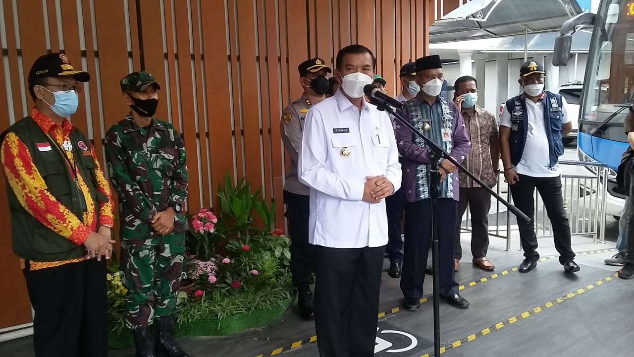 Ket Foto: Walikota Pekanbaru DR H Firdaus ST MT melakukan peluncuran sebanyak lima bus vaksinasi keliling, Kamis (27/5/2021).