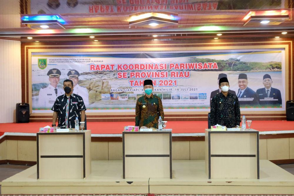 Sebanyak 12 Kepala Dinas Pariwisata kabupaten/kota di Riau ikut hadir. Dibuka secara resmi secara resmi oleh Bupati Rohil, Afrizal Sintong, Jumat (16/7). Berbagai arah kebijakan dalam meningkatkan akses destinasi wisata, promosi pariwisata, dan mengembangkan ekonomi kreatif secara terpadu turut dibahas dalam Rakor.