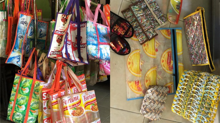 Proses pengolahan sampah diawali dengan pemilahan terlebih dahulu, kemudian sampah di kumpulkan, lalu dicuci, dijahit dan siap dipasarkan. Sampah yang diolah itu sampah dari bahan dasar plastik.