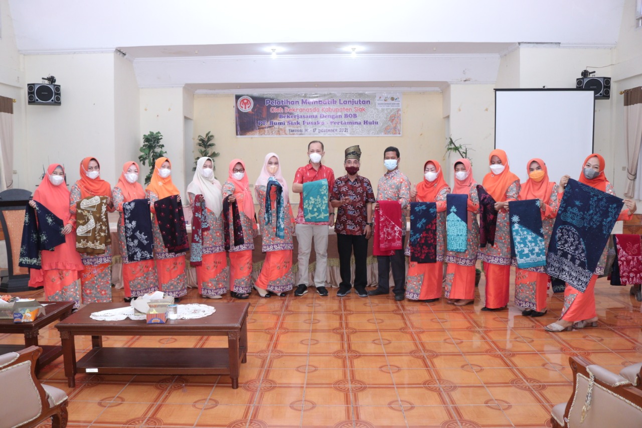 UTUSANRIAU.CO, SIAK - Dalam rangka meningkatkan kompetensi para Pengrajin Batik binaan, BOB PT Bumi Siak Pusako-Pertamina Hulu, berkolaborasi dengan Dekranasda Kabupaten Siak menggelar Pelatihan Membatik Lanjutan yang diselenggarakan di Gedung Wanita dan Rumah Batik Dekranasda Siak. Kegiatan dimulai dari tanggal 14-17 Desember 2021.
