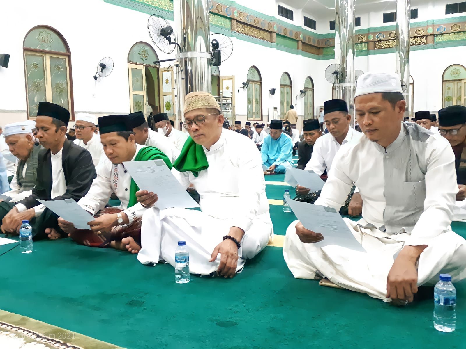 Dalam acara istigosah dan zikir bersama yang di awali sholat magrib berjamah di mesjid Raya Darul Ulum Selatpanjang, Sabtu (18/12). yang di hadiri oleh Bupati Kabupaten Kepulauan Meranti seluruh Kepala OPD, dan para jemaah