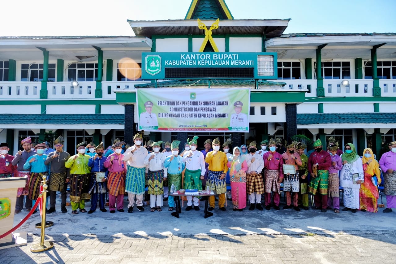 Hal tersebut disampaikan Bupati Adil saat Pengukuhan Pejabat Administrator dan Pengawas di Lingkungan Pemerintah Kabupaten Kepulauan Meranti dan penyerahan DIPA-SKPD Anggaran 2022 sekaligus Penandatanganan Pakta Integeritas, di Halaman Kantor Bupati, Jumat (7/1/2022).