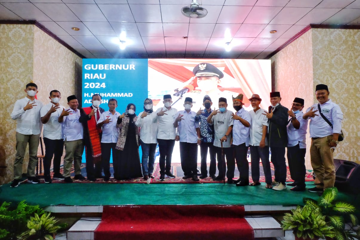 Deklarasi Gubernur Riau oleh H. Muhammad Adil secara resmi ia sampaikan usai mengukuhkan dua tim pemenangan di Pendopo Amarta Puri, Jalan Soekarno Hatta, Sabtu (29/1/2022).