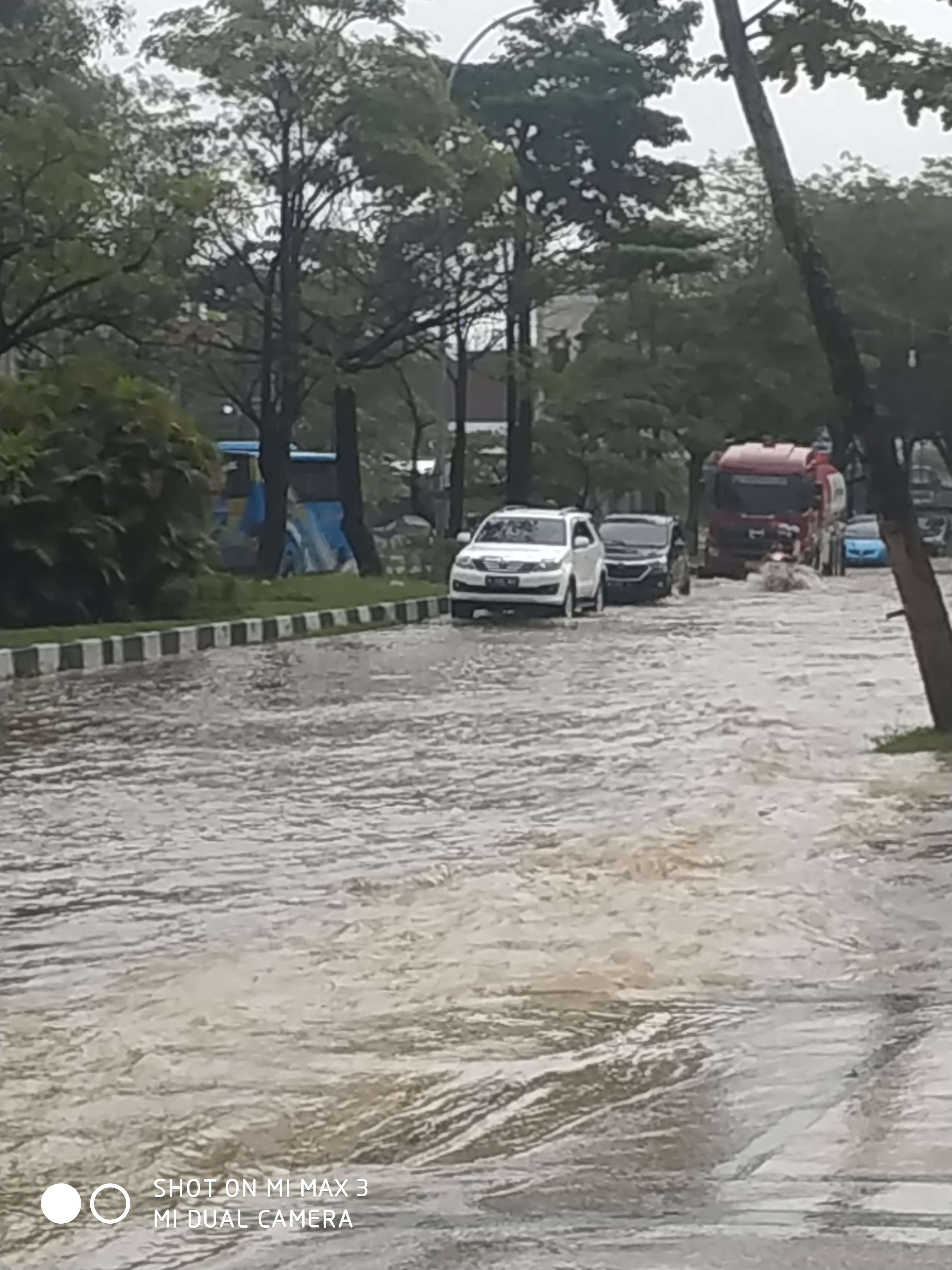 UTUSANRIAU.CO - Hujan mengguyur kota Pekanbaru dari subuh hingga pagi pukul 09.00 wib, membuat Sejumlah ruas jalan di Pekanbaru tergenang air. Pantauan di lapangan pagi ini genangan air terlihat di jalan Arifin Achmad Pekanbaru dan Jalan Soebrantas.