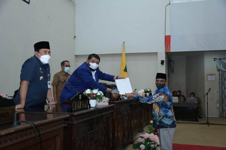 Ket Foto: Ketua DPRD Rohul Novliwanda Ade Putra ST. M. Si Menerima Penyampaian LKPJ Bupati Tahun 2021