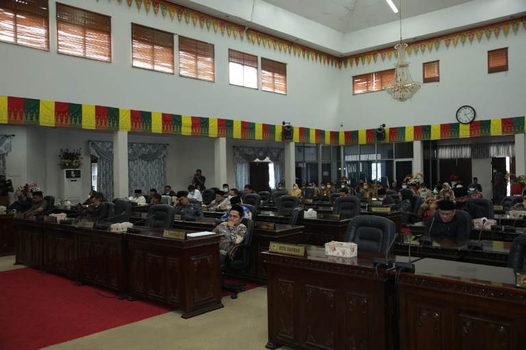 Rapat Sidang Paripurna DPRD Rohul, Laporan Keterangan Pertanggungjawaban (LKPJ) Bupati Rokan Hulu Tahun Anggaran 2021, pada sidang Paripurna yang digelar Senin (18/4/2022), di ruang Paripurna DPRD Rohul. Sidang Paripurna tersebut dipimpin langsung Ketua DPRD Rohul Novliwanda Ade Putra ST. M. Si serta dihadiri Pimpinan DPRD Rohul Nono Patria Pratama, Bupati Rokan Hulu H.Sukiman dan Pejabat Pemkab Rohul.
