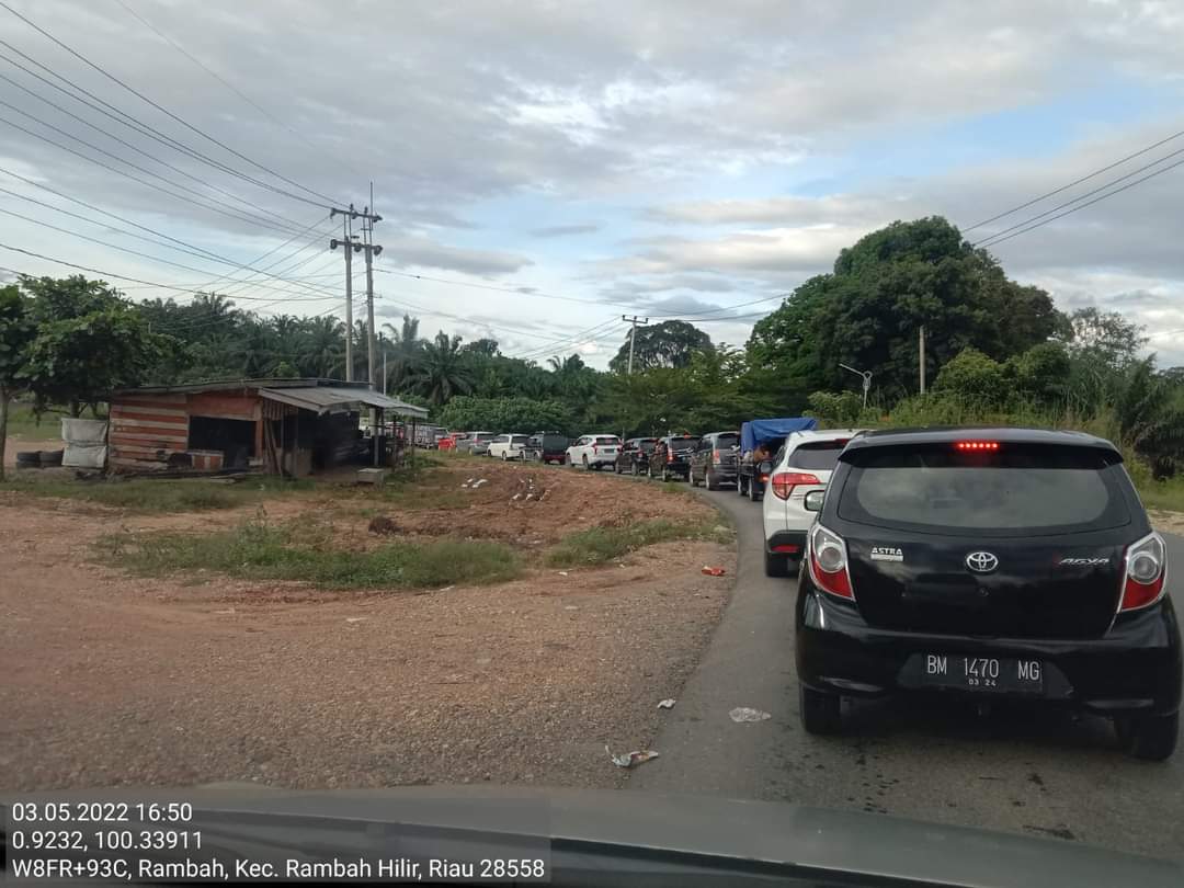 Tampaknya hari lebaran Idul Fitri ke- 3 1443 M, Rabu (04/05/2022) pagi, terlihat jalan tersebut nampak macet dan saling antri 1- 2 jam baik roda dua maupun roda 4.