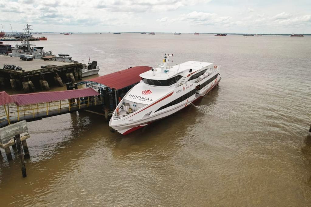 Ket Foto : Fast Ferry Indomal dari Pelabuhan Antarbangsa Melaka tiba di pelabuhan Dumai, pada Jumat (6/5/2022) siang. (foto dok Dispar Riau).