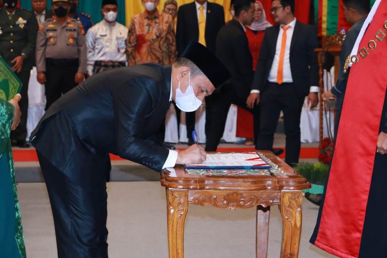 Ket Foto: Sekdako HM Jamil bersama Unsur Forkopimda dan Tamu undangan hadiri dalam pelantikan Ketua DPRD Pekanbaru Muhammad Sabarudi, ST