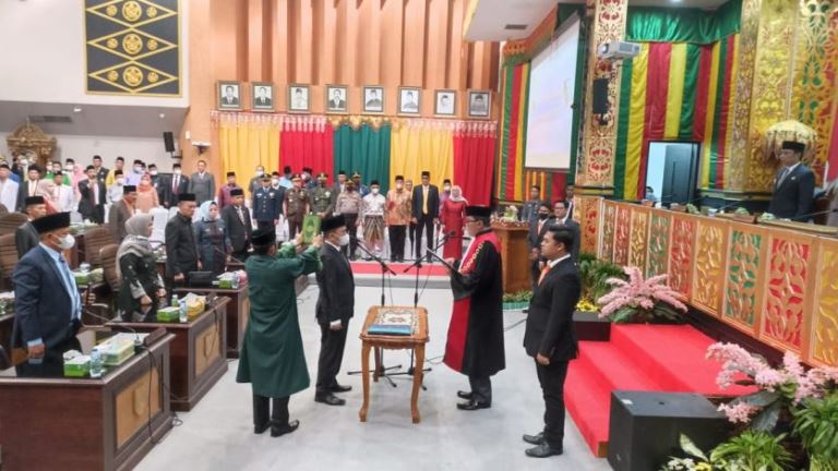 UTUSANRIAU.CO, PEKANBARU - Muhammad Sabarudi resmi dilantik menjadi Ketua DPRD Pekanbaru periode 2019-2024 menggantikan Hamdani, Selasa (21/6/2022) di Kantor DPRD Kota Pekanbaru. Pelantikan tersebut dilakukan oleh Ketua Pengadilan Negeri (PN) Pekanbaru yang disaksikan oleh beberapa pejabat seperti Pj Walikota Pekanbaru, Wakil Ketua DPRD, anggota DPRD Provinsi Riau, serta mantan Walikota Pekanbaru, Firdaus.