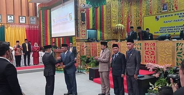 Pj Walikota Pekanbaru, Muflihun mengucapkan selamat kepada Sabarudi yang menjadi Ketua DPRD Pekanbaru untuk melanjutkan sisa masa jabatan periode 2019-2024.