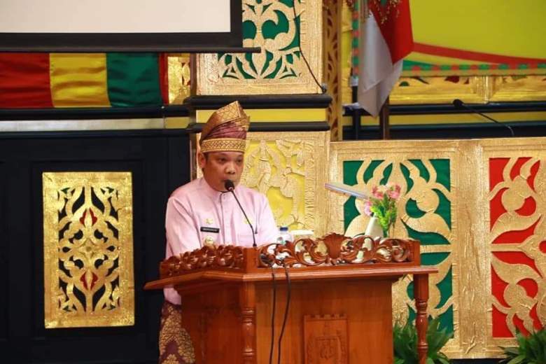 Ket Foto Sambutan Pj Wali Kota Pekanbaru Muflihun dalam rapat paripurna istimewa HUT ke-238 Kota Pekanbaru, Kamis (23/6/2022) di Balai Payung Sekaki gedung DPRD kota Pekanbaru.