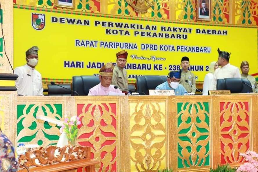 Ket Foto: Suasana rapat paripurna istimewa HUT ke-238 Kota Pekanbaru, Kamis (23/6/2022) di Balai Payung Sekaki gedung DPRD kota Pekanbaru.
