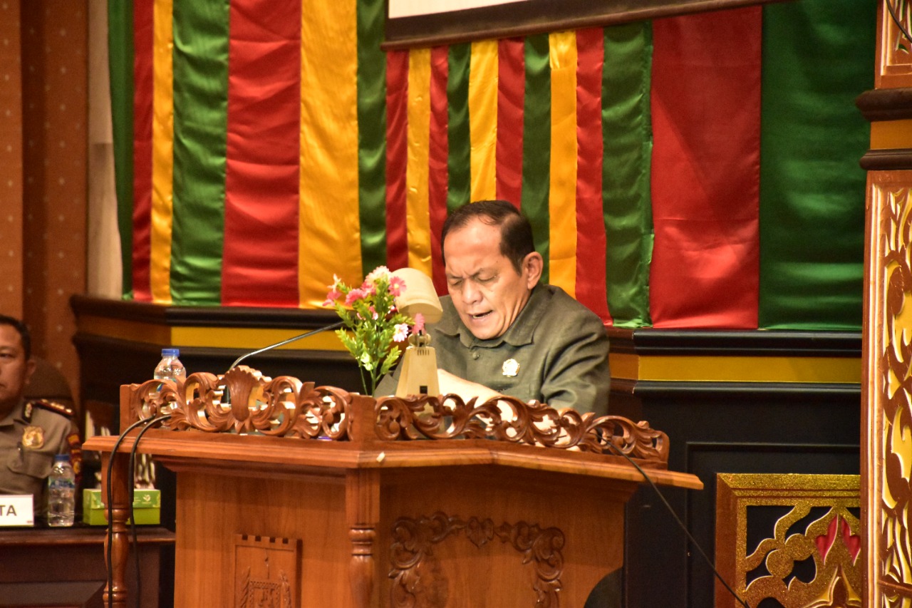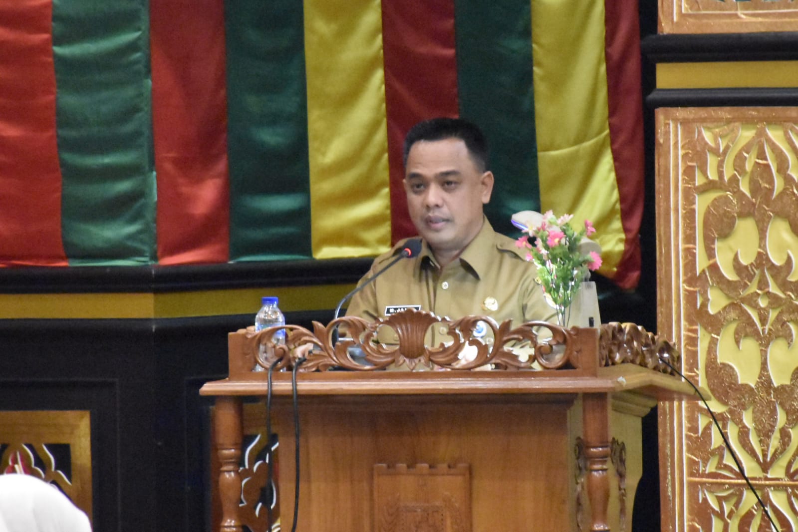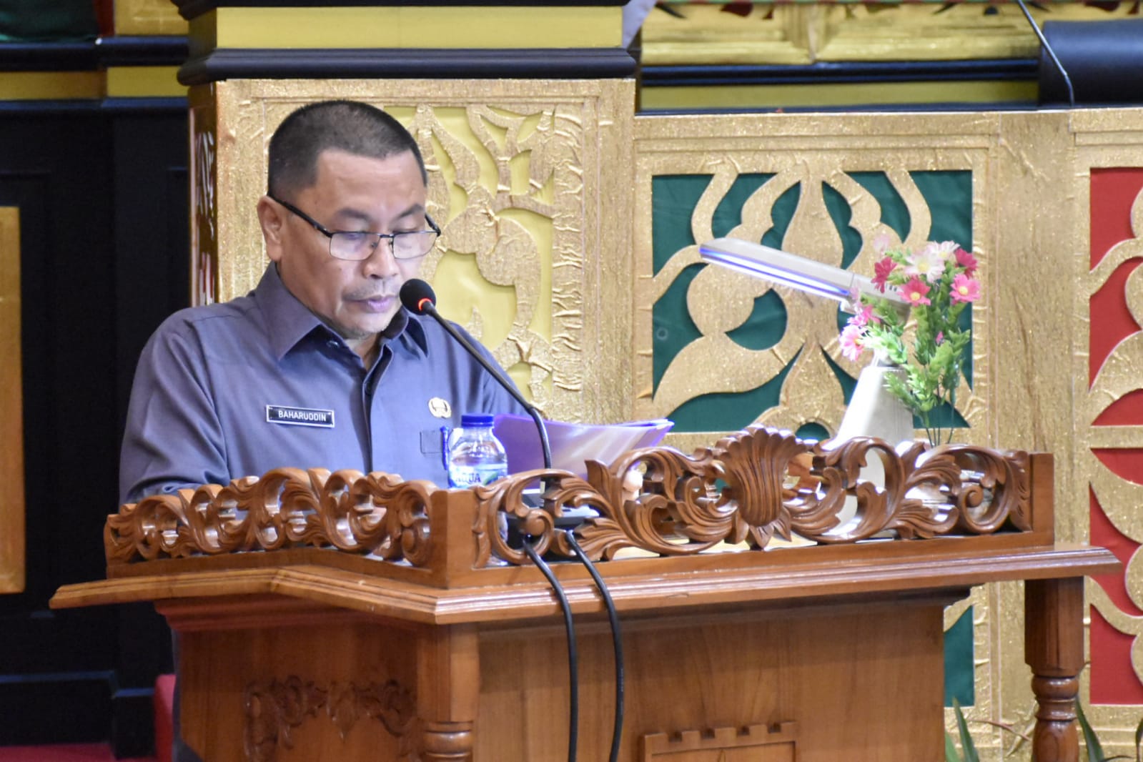 UTUSANRIAU.CO, PEKANBARU - Sekretaris Daerah Kota (Sekdako) Pekanbaru Muhammad Jamil menyampaikan jawaban Pemko Pekanbaru terkait pelaksanaan APBD 2021 dalam sidang paripurna, Selasa (28/2). Jawaban yang disampaikan atas pandangan umum fraksi-fraksi DPRD terhadap rancangan peraturan daerah (Ranperda) tentang Pertanggungjawaban Pelaksanaan APBD 2021.