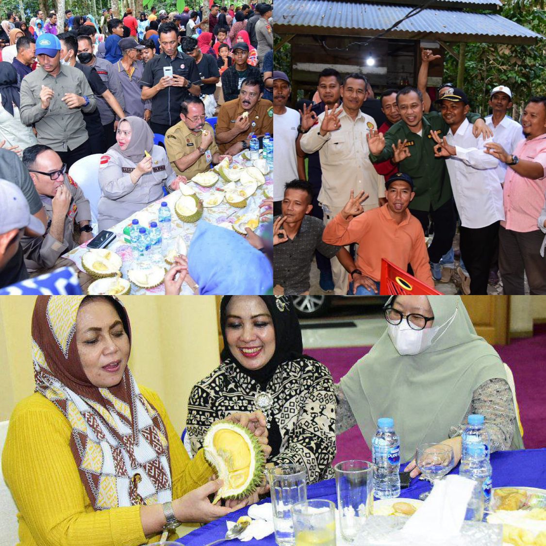 Berlanjut gebyar makan duren yang ditengok Gubernur Syamsuar dan isteri. Tak kaleng- kaleng untuk suksesnya acara orang nomor satu Riau ini, demi membagi waktu harus naik Helikopter. Gebyar acarapun hingar bingar mendapat sambutan luar biasa dari petani duren dan warga.