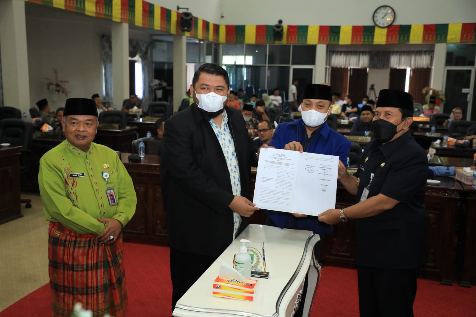 Bupati Rokan Hulu H.Sukiman Dalam sambutannya mengatakan atas nama Pemerintah Kabupaten Rokan Hulu mengucapkan apresiasi dan penghargaan yang setinggi-tingginya kepada dewan atas disetujuinya Ranperda tersebut.