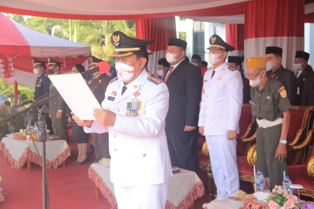 Ket Foto: Bupati Rokan Hulu H. Sukiman Membacakan Teks Proklamasi