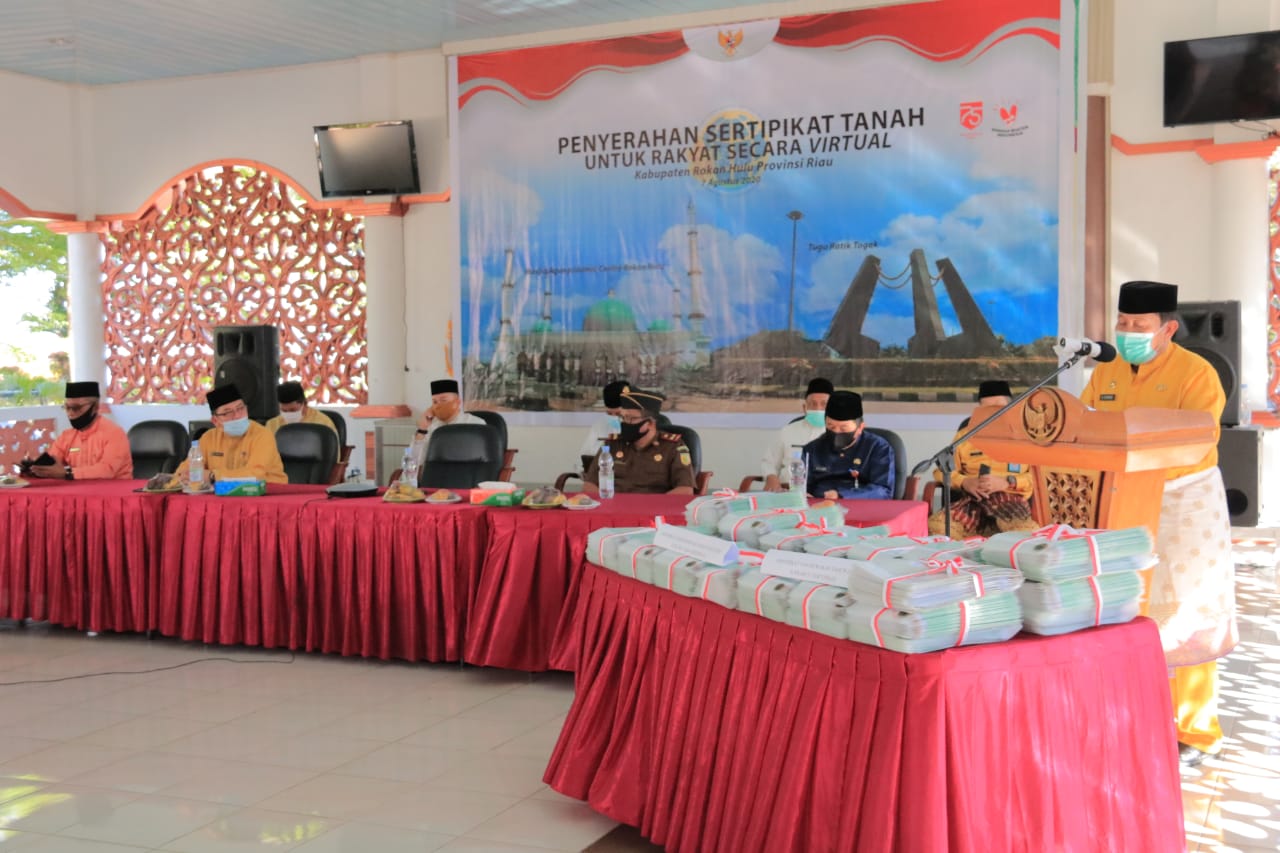 UTUSANRIAU.CO, ROKAN HULU - Penyerahan sertifikat tanah untuk rakyat secara virtual langsung oleh Kementerian ATR/Kepala BPN kepada Bupati Rokan Hulu(Rohul) Jum'at (7/8/2020).