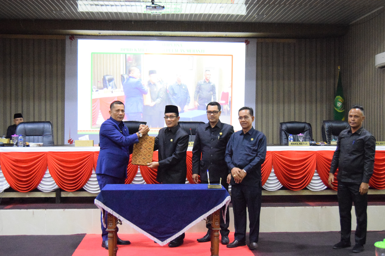 Kesepakatan bersama antara legislatif dengan eksekutif dilakukan pada sidang paripurna di Balai sidang DPRD Kepulauan Meranti beberapa waktu lalu