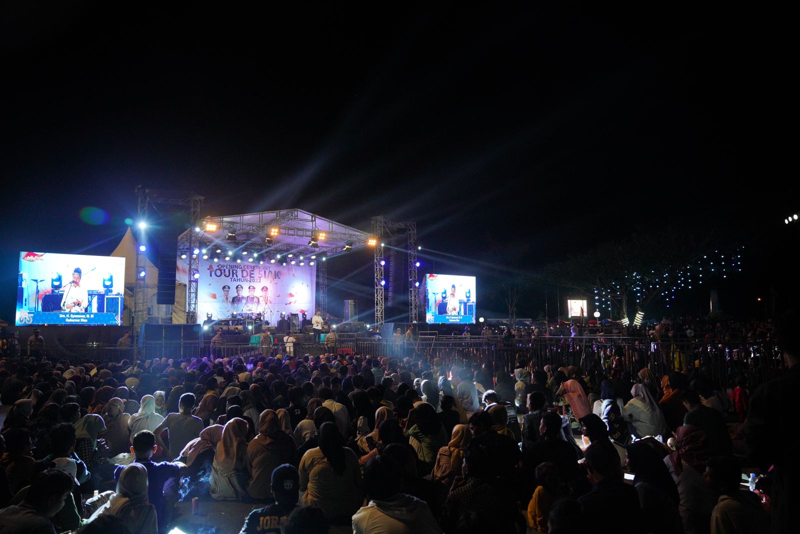 UTUSANRIAU.CO, PEKANBARU - Pembukaan Tour de Siak 2022 resmi digelar, Kamis (1/12/32) malam di Kabupaten Siak. Acara pembukaan event balap sepeda tersebut turut dimeriahkan oleh artis ibu kota Republik Band, dan grup musik Melayu Lebah Begantong yang berasal dari Medan Sumatera Utara.