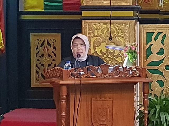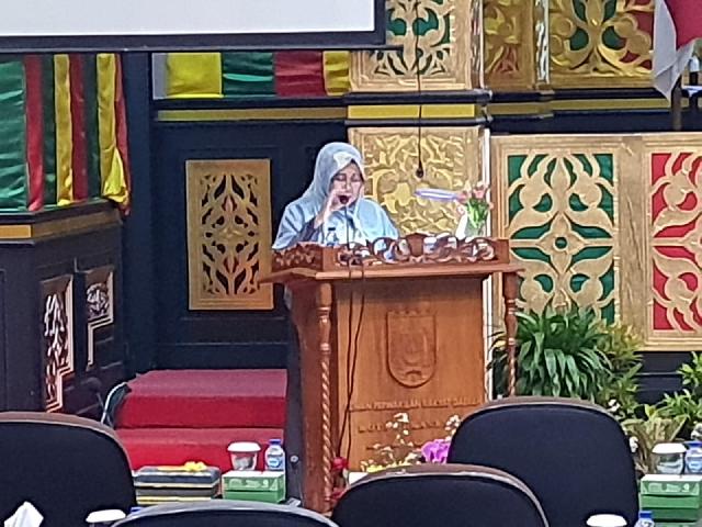 Ket Foto : Roem Diani Dewi, juru Fraksi Demokrat DPRD Pekanbaru menyampaikan pandangan fraksinya saat rapat paripurna, Kamis (29/9/2022).