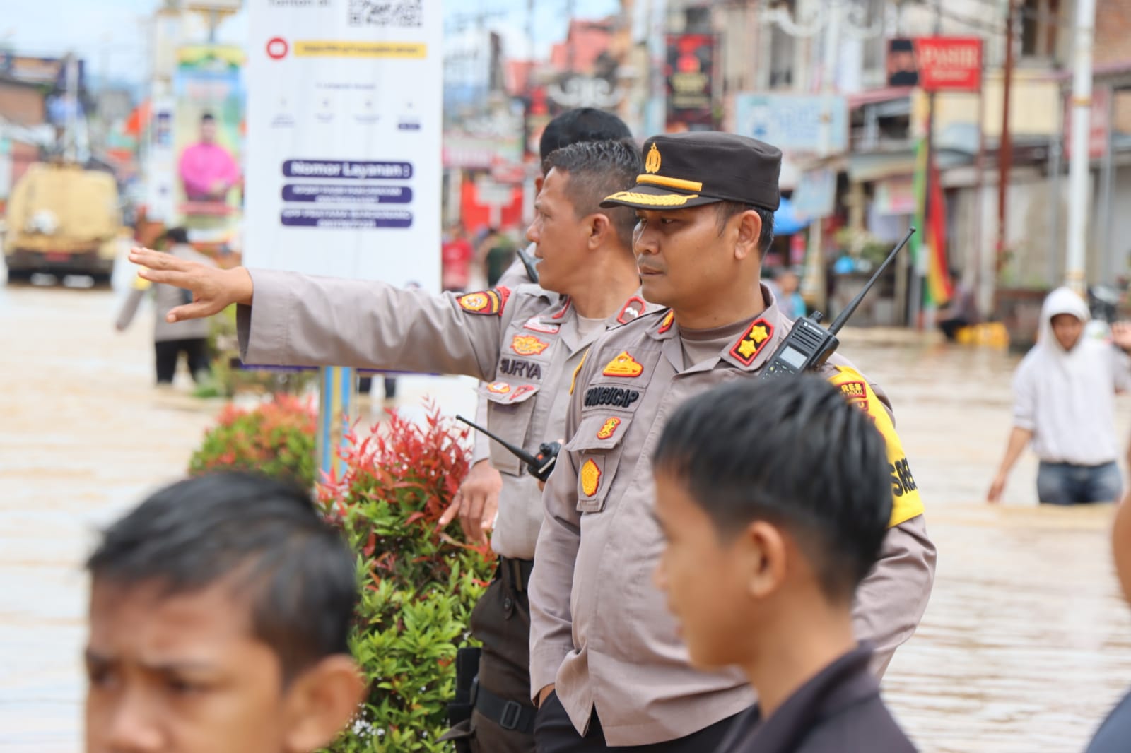 Kapolres Rohul menerangkan, dirinya meninjau lokasi banjir dan berkomunikasi terhadap Masyarakat korban banjir dan memberikan himbauan agar memastikan aliran Listrik dalam kondisi aman.