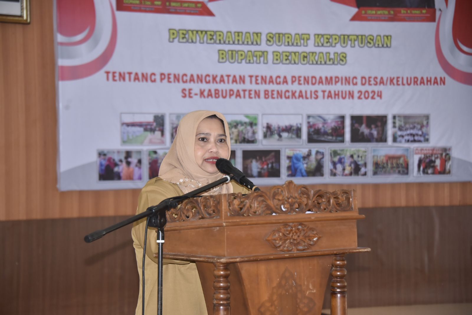 Pada kesempatan itu Bupati Bengkalis Kasmarni mengucapkan selamat dan taniah kepada 341 tenaga pendamping desa/kelurahan se-Kabupaten Bengkalis, baik pendamping ekonomi maupun pendamping pembangunan.