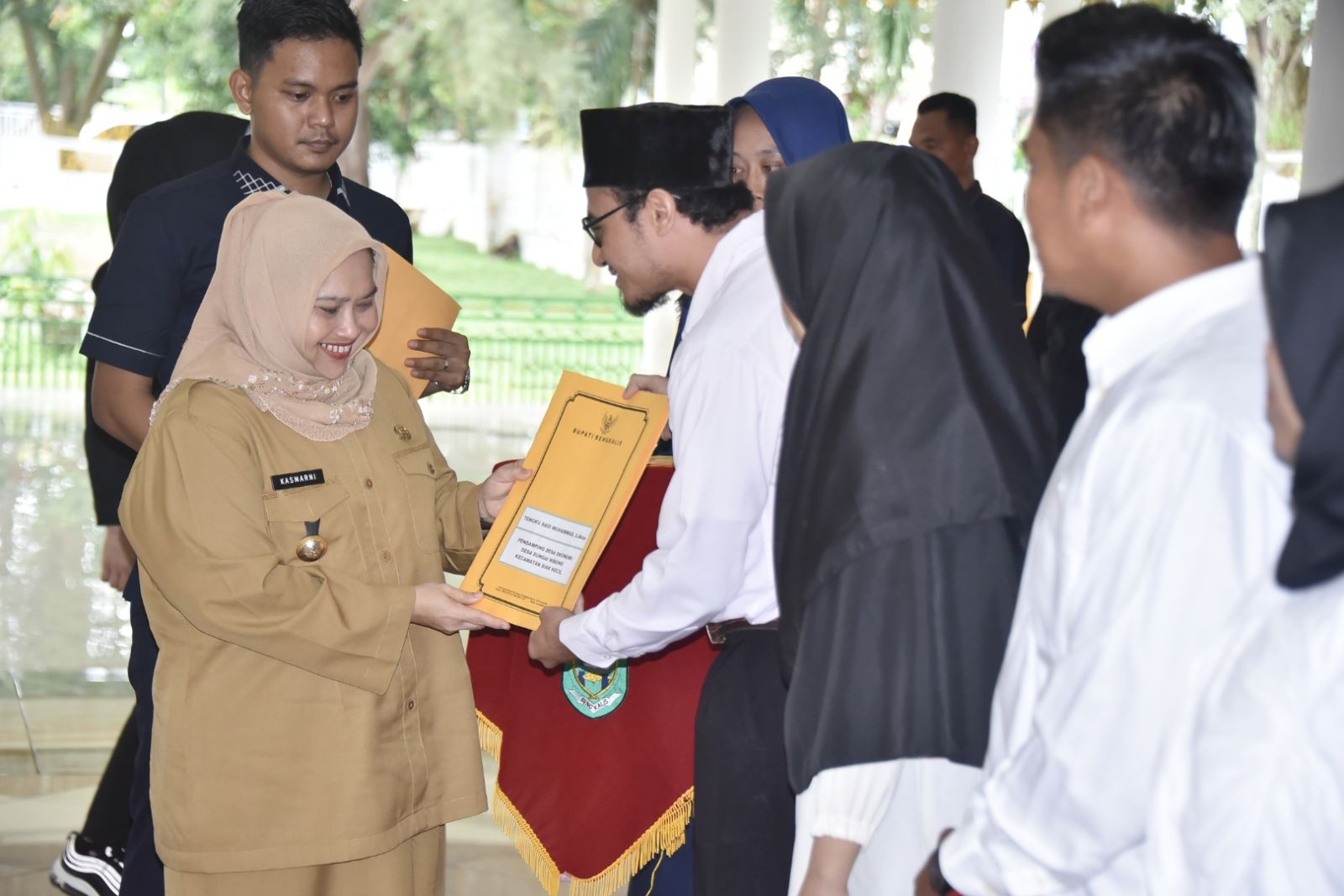 UTUSANRIAU. CO, BENGKALIS - Bupati Bengkalis Kasmarni menyerahkan Surat Keputusan (SK) pengangkatan tahun 2024, kepada 341 tenaga Pendamping Desa/Kelurahan se- Kabupaten Bengkalis, Senin 8 Januari 2024, di Pendopo Wisma Daerah Bengkalis.