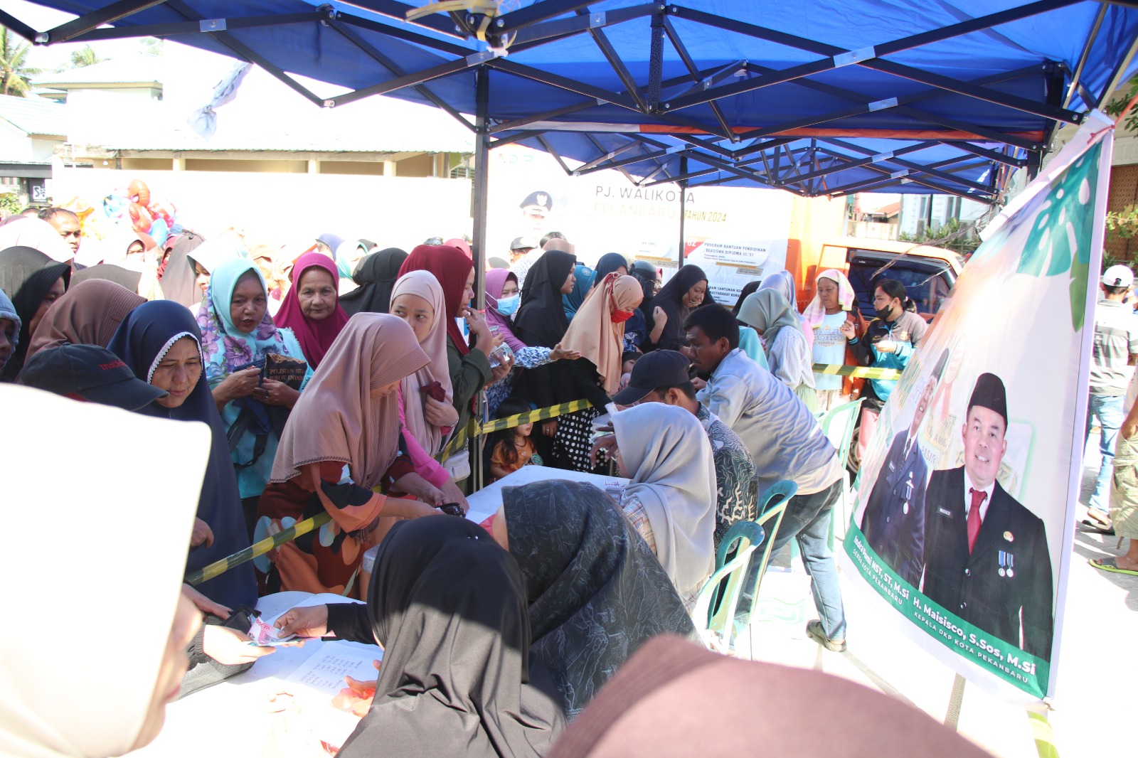 UTUSANRIAU. CO, PEKANBARU - Jajaran Dinas Ketahanan Pangan (DKP) Pekanbaru melaksanakan Bimbingan dan Penyuluhan terkait penerapan pola konsumsi pangan B2SA (Beragam, Bergizi, Seimbang dan Aman), kegiatan tersebut bersamaan dengan pelaksanaan Gerakan Pangan Murah (GPM) di Halaman Masjid Raudhatussolohin Jalan Bukitbarisan, Kecamatan Kulim, Pekanbaru, Kamis (29/2/2024).