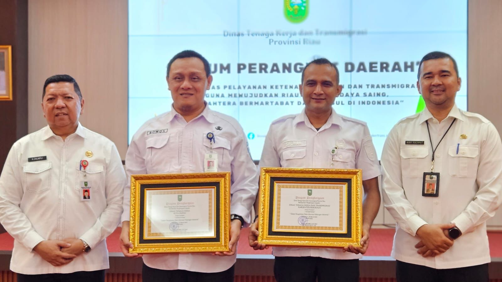 Sedangkan Kabupaten/kota penerima Penghargaan itu: 1. Disnaker Kota Dumai , 2. Disnaker Kabupaten Bengkalis, 3.Disnaker Kabupaten Kampar.