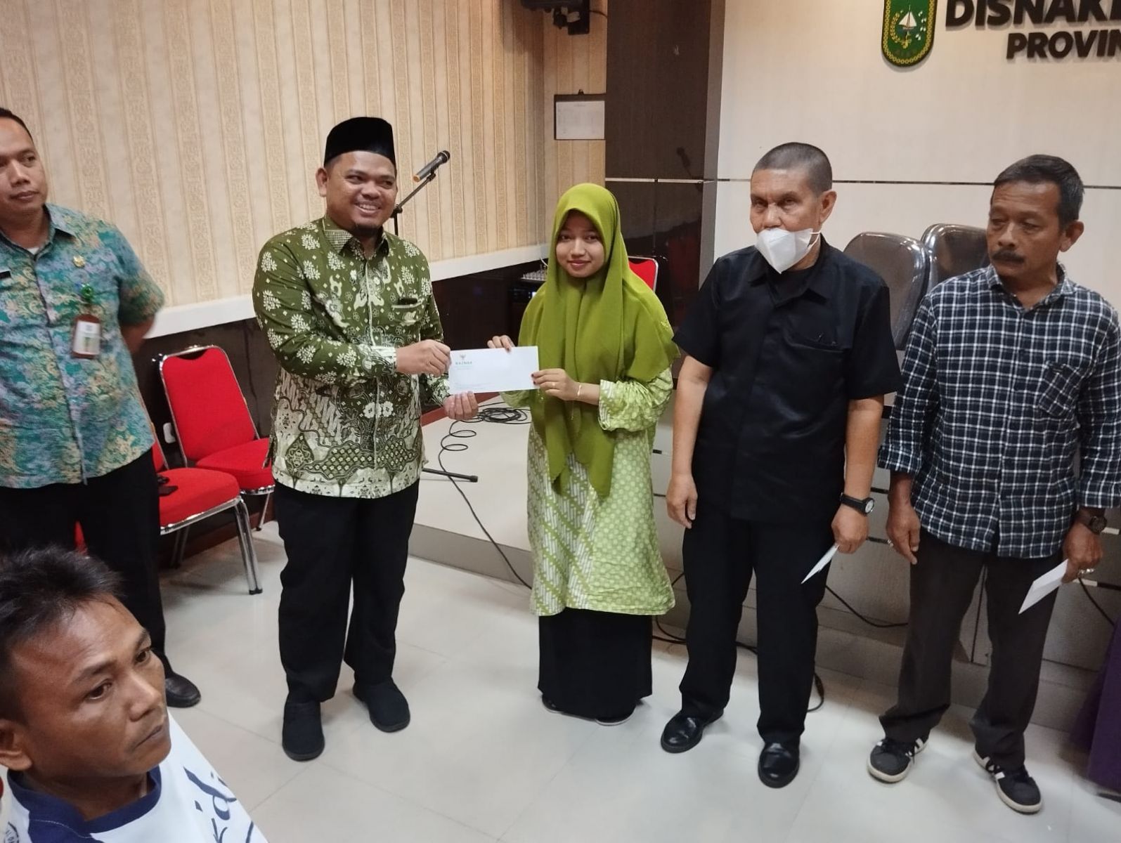 Hadir mendampingi kadisnakertrans Riau, Kabid hubungan Industrial Disnakertrans Riau H Moch. Yunus, S.Si, M.Phil, Kepala Seksi (Kasi) Persyaratan Kerja, Bidang Hubungan Industrial (HI) Dinas Tenaga Kerja dan Transmigrasi (Disnakertrans) Provinsi Riau, Raja Dedi Suhanda,Kasubag Umum dan kepegawaian Disnakertransriau dan THL Disnakertrans Riau. Kegiatan tersebut di pandu oleh Sekretaris Disnakertrans Provinsi Heru Hariyoto Prayitno, M.Si, Sedangkan dari Badan Amil dan Zakat Nasional (Baznas) Provinsi Riau di hadiri langsung Wakil ketua II Bidang Pendistribusian Zakat (BAZNAS) Provinsi Riau, Jamaluddin, S.Ag, M.Sy.