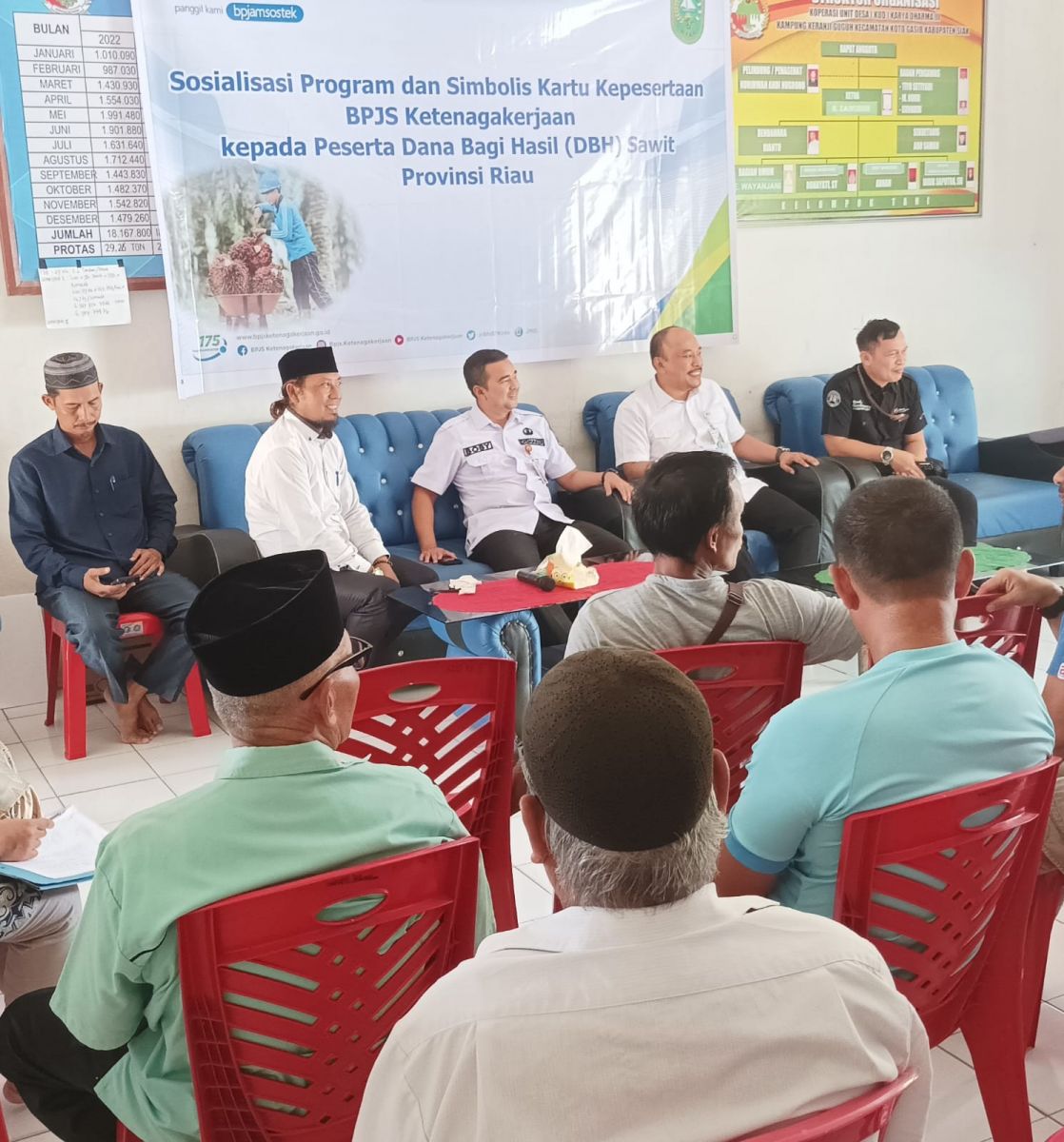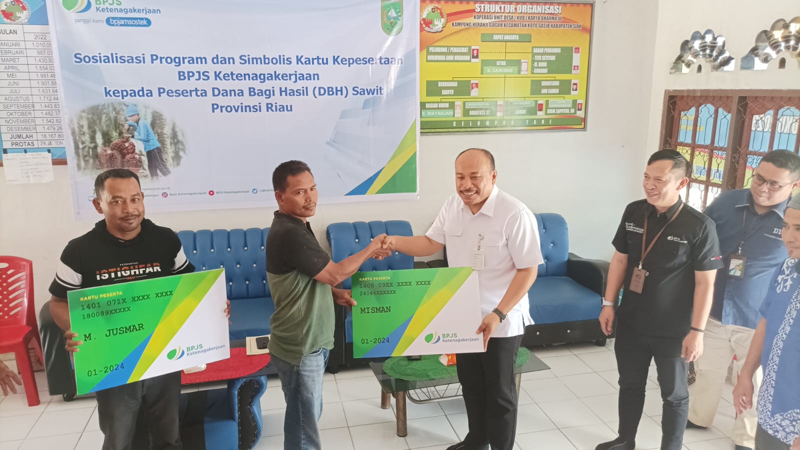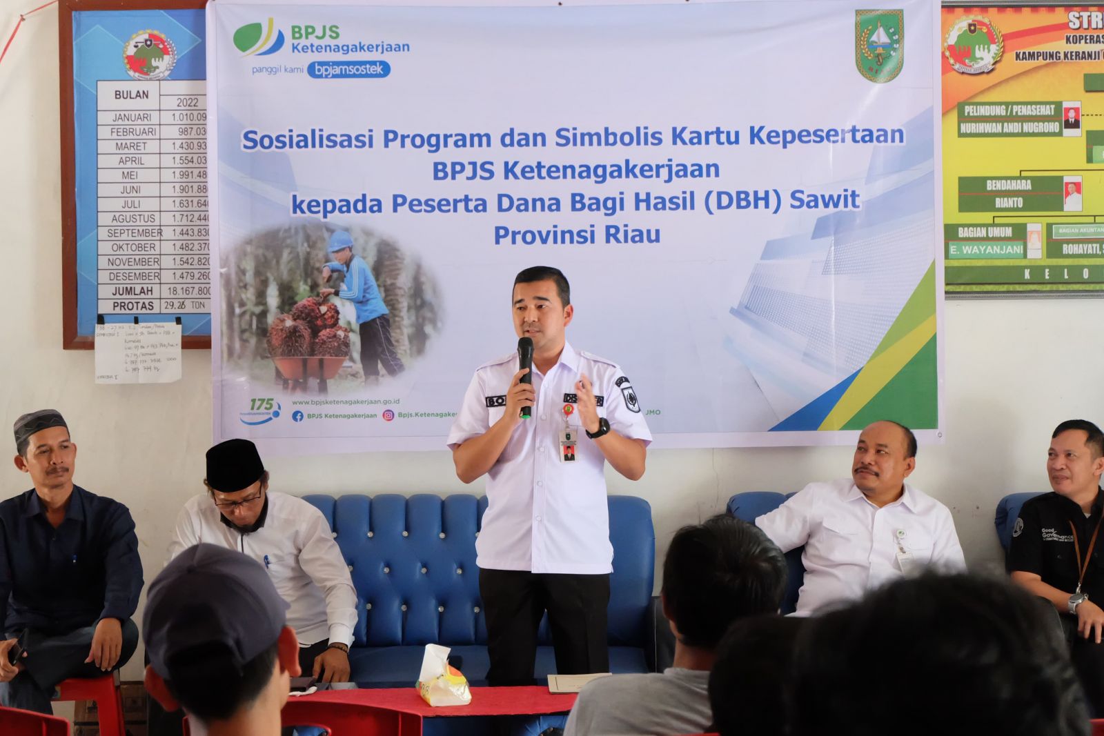 "BPJS Ketenagakerjaan melakukan koordinasi dengan berbagai pihak diantaranya Dinas Tenaga Kerja dan Trasnmigrasi Provinsi Riau, Dinas Perkebunan Provinsi Riau, Serikat Pekerja dan Asosiasi/ Komunitas Petani Sawit berserta seluruh unsur yang mendukung penyaluran DBH Sawit ini," sambungnya.