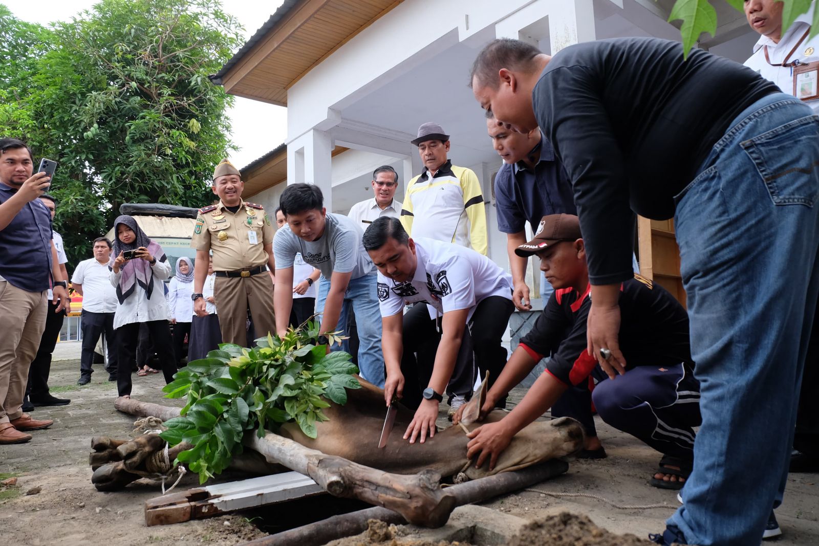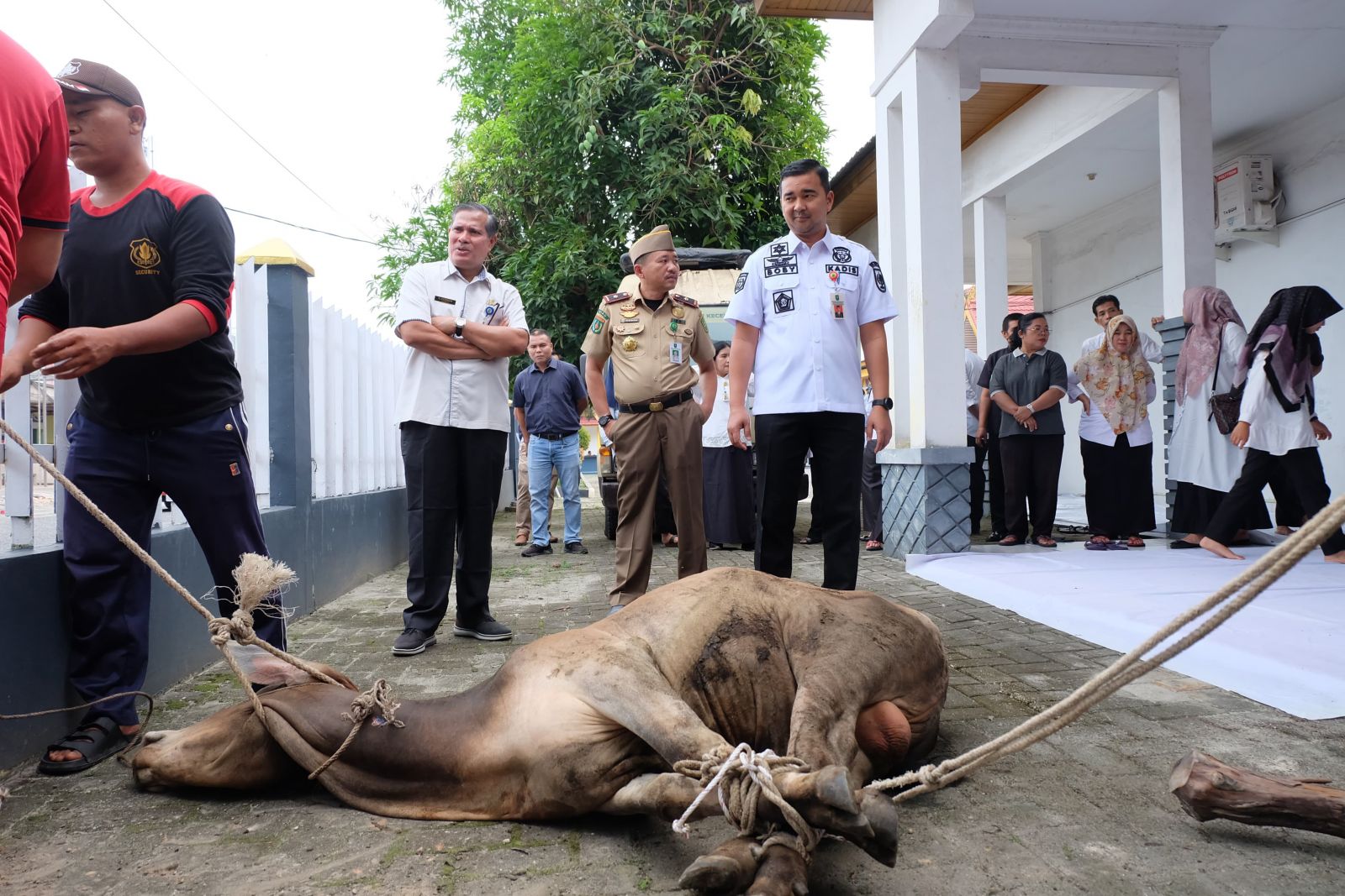 Pemotongan sapi Qurban ini dimulai sejak pukul 08.00 pagi di halaman Disnakertrans riau dan dihadiri Kepala Disnakertrans Riau H. Boby Rachmat dan diikuti Sekretaris Dinas Heru Haryo Prayitno, kasubag umum Disnakertrans Riau Tatang Wahyudi dan disaksikan seluruh pegawai Disnakertrans riau, Rabu (19/06/2024).