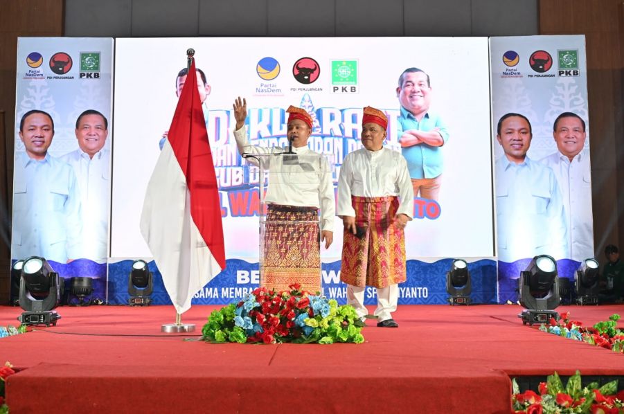 UTUSANRIAU.CO, PEKANBARU -- Pasangan Calon Gubernur dan Wakil Gubernur Riau Abdul Wahid-SF. Hariyanto menggelar deklarasi yang dihadir ribuan pendukung, acara berlangsung meriah dan histeris ini dilaksanakan di gran ball room hotel Aryaduta, Rabu 28 Agustus 2024.