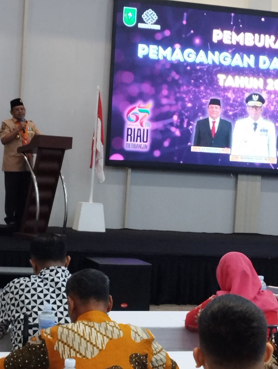 Ket foto : Ketua (FKJP) Forum Komunikasi Jejaring Pemagangan Provinsi Riau Muhammad Ridwan saat memberikan Arahan .