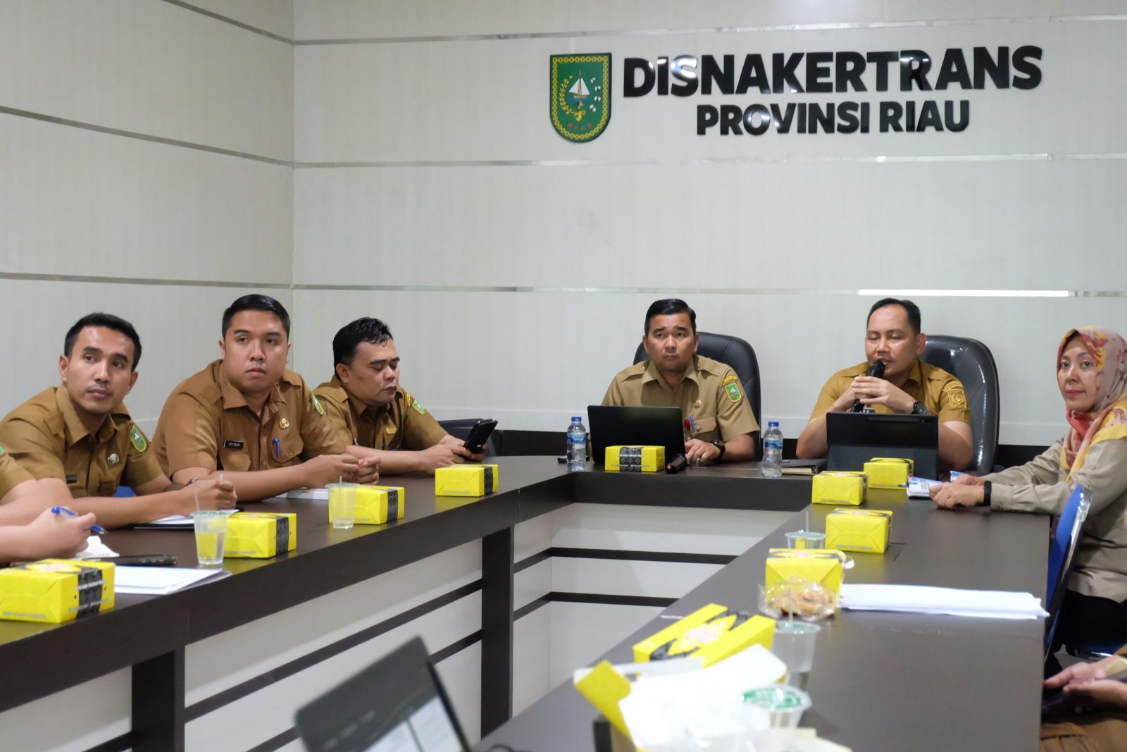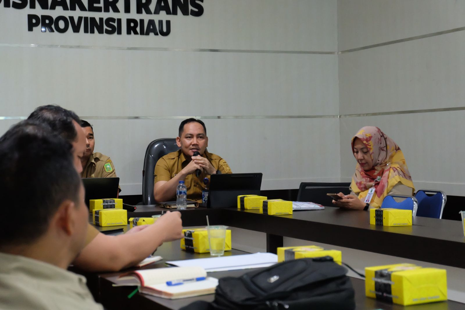 Rapat yang berlangsung di Ruang Multimedia Disnakertrans Provinsi Riau ini membahas penguatan pelayanan informasi publik dan dokumentasi.