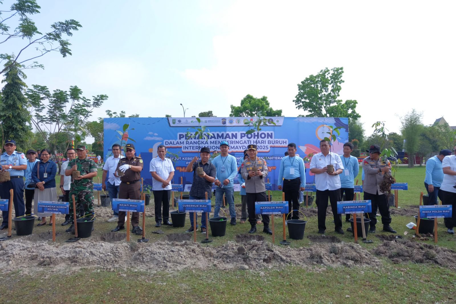 Dalam kegiatan ini juga dilaksanakan penanaman pohon oleh Gubernur Riau, Kapolda Riau serta Forkopimda dan rekan-rekan serikat buruh serentak menanam pohon.