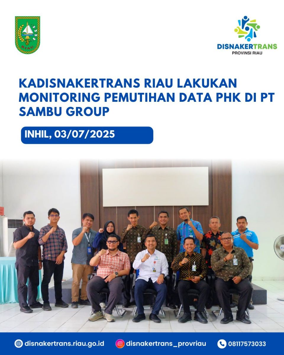 UTUSANRIAU. CO, INHIL – Kepala Dinas Tenaga Kerja dan Transmigrasi (Disnakertrans) Provinsi Riau, H. Boby Rachmat, S.STP, M.Si menghadiri kegiatan monitoring dan pembahasan pemutihan data Pemutusan Hubungan Kerja (PHK) yang dilaksanakan di Kantor Disnakertrans Kabupaten Indragiri Hilir, Kamis (3/7/2025). Agenda ini menjadi bagian dari upaya strategis Pemerintah Provinsi Riau dalam mengawasi dan menyikapi isu ketenagakerjaan, khususnya terkait PHK massal di PT Sambu Group.