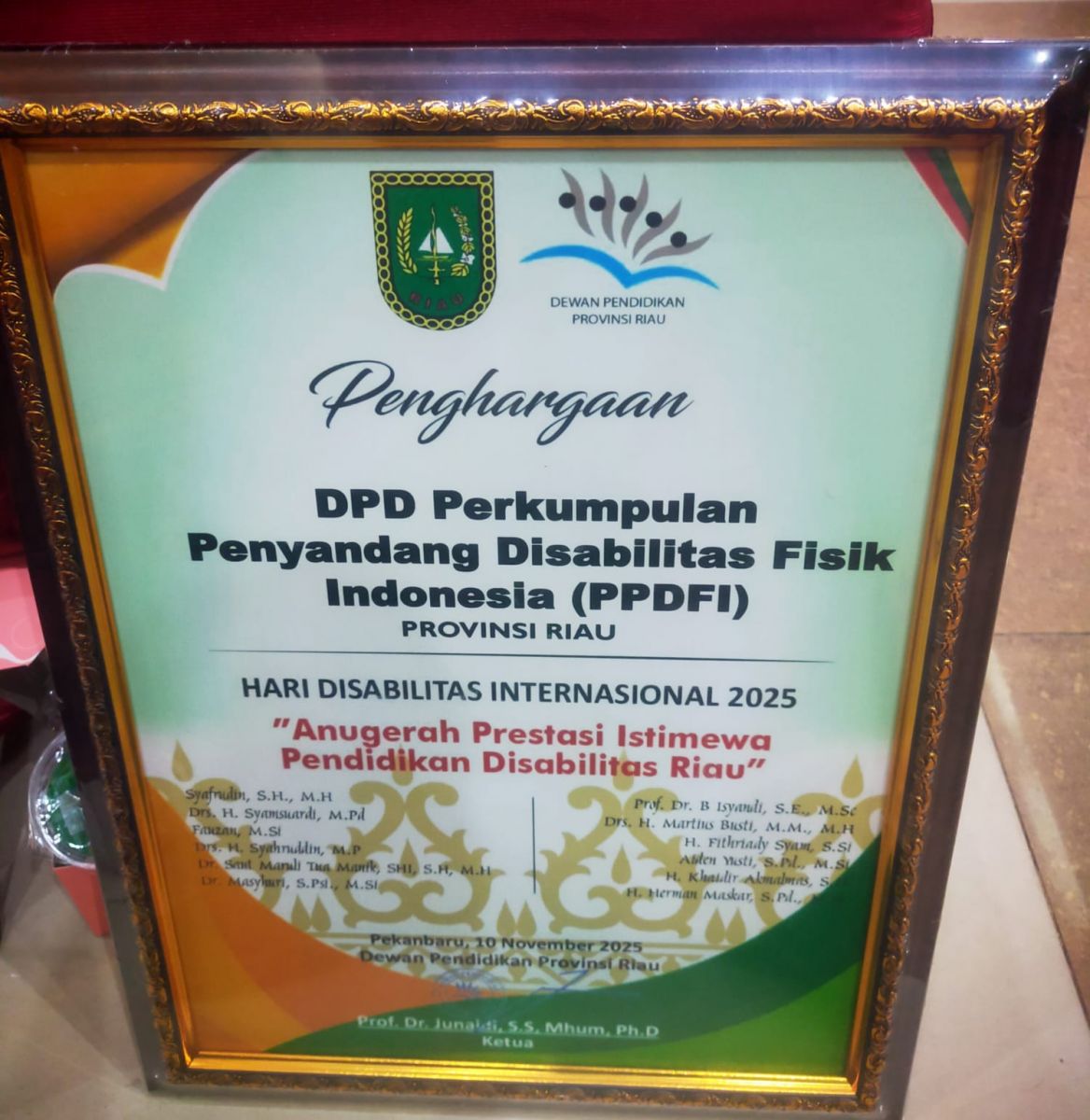 Ketua Dewandik Riau Prof Dr Junaidi mengungkapkan rasa bahagianya. Sebab mampu memberikan anugerah kepada prestasi yang digapai para siswa disabilitas di Riau.