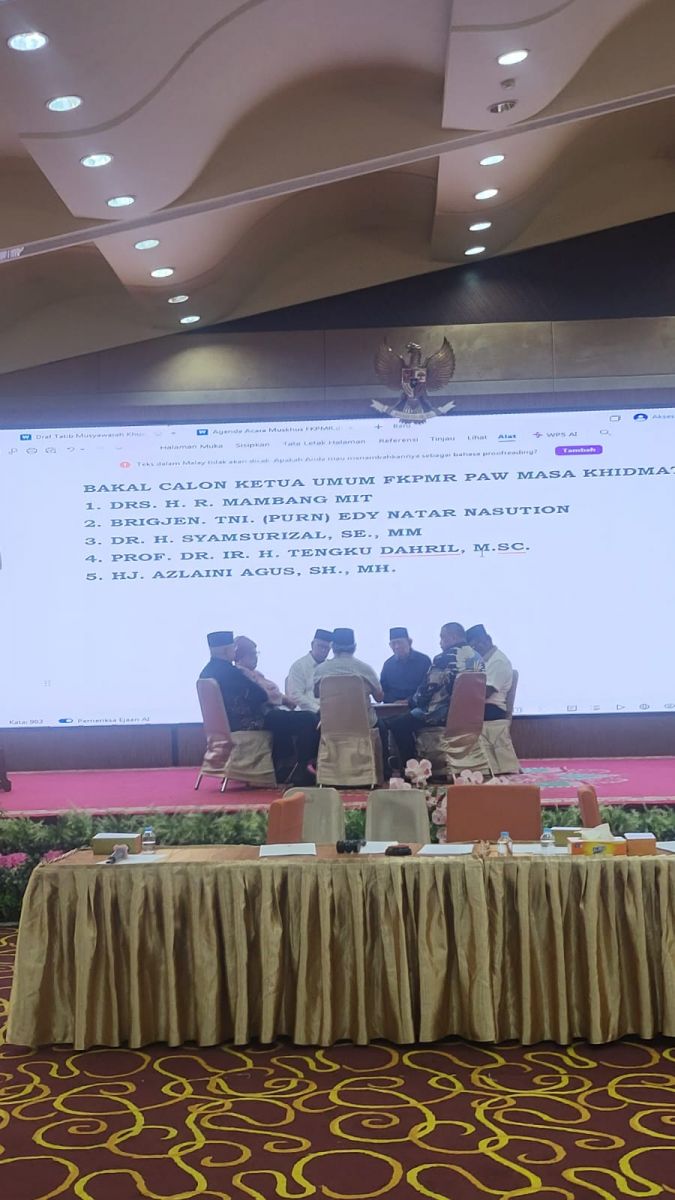 Pada awal musyawarah, lima nama tampil sebagai calon Ketua Umum FKPMR, masing-masing HR Mambang Mit, Brigjen Purn. Edi Natar Nasution, Syamsurizal, Prof. Tengku Dahril, dan Hj. Azlaini Agus.