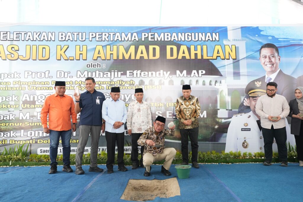 Peletakan batu pertama Masjid dilakukan oleh Ketua PP Muhammadiyah sekaligus Penasihat Khusus Presiden Bidang Haji, Prof. Dr. Muhadjir Effendy, M.AP, Rektor UMSU Prof. Agussani, MAP, Ketua PWM Sumut Prof. Dr. Hasyimsyah Nasution, M.A, Direktur Utama PT Bank Syariah Indonesia Tbk, Anggoro Eko Cahyo, Wakil Gubsu H. Surya, B.Sc dan Wakil Bupati Deli Serdang Lom Lom Suwondo, S.S.
